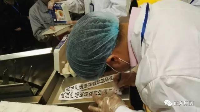 現(xiàn)場,武漢產(chǎn)品質(zhì)量監(jiān)督檢驗(yàn)所方惠文主任、彭勇勝先生對正大雞蛋進(jìn)行現(xiàn)場抽檢。