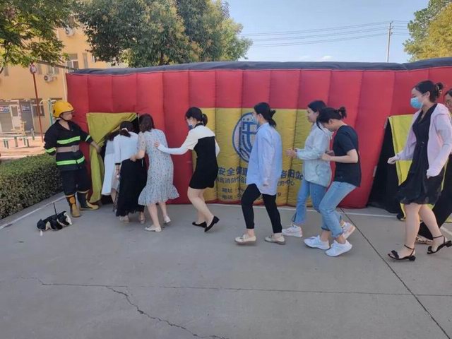 曲建華副總裁親自帶頭體驗逃生帳篷項目