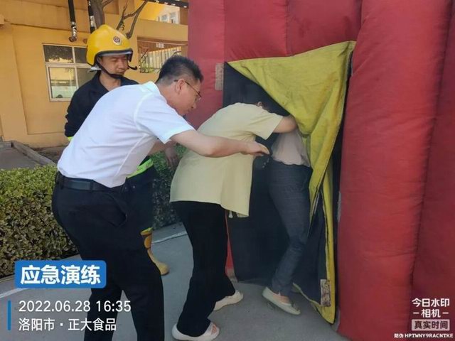 車間、外圍員工逐個體驗應急逃生帳篷項目